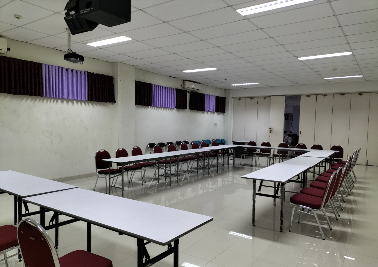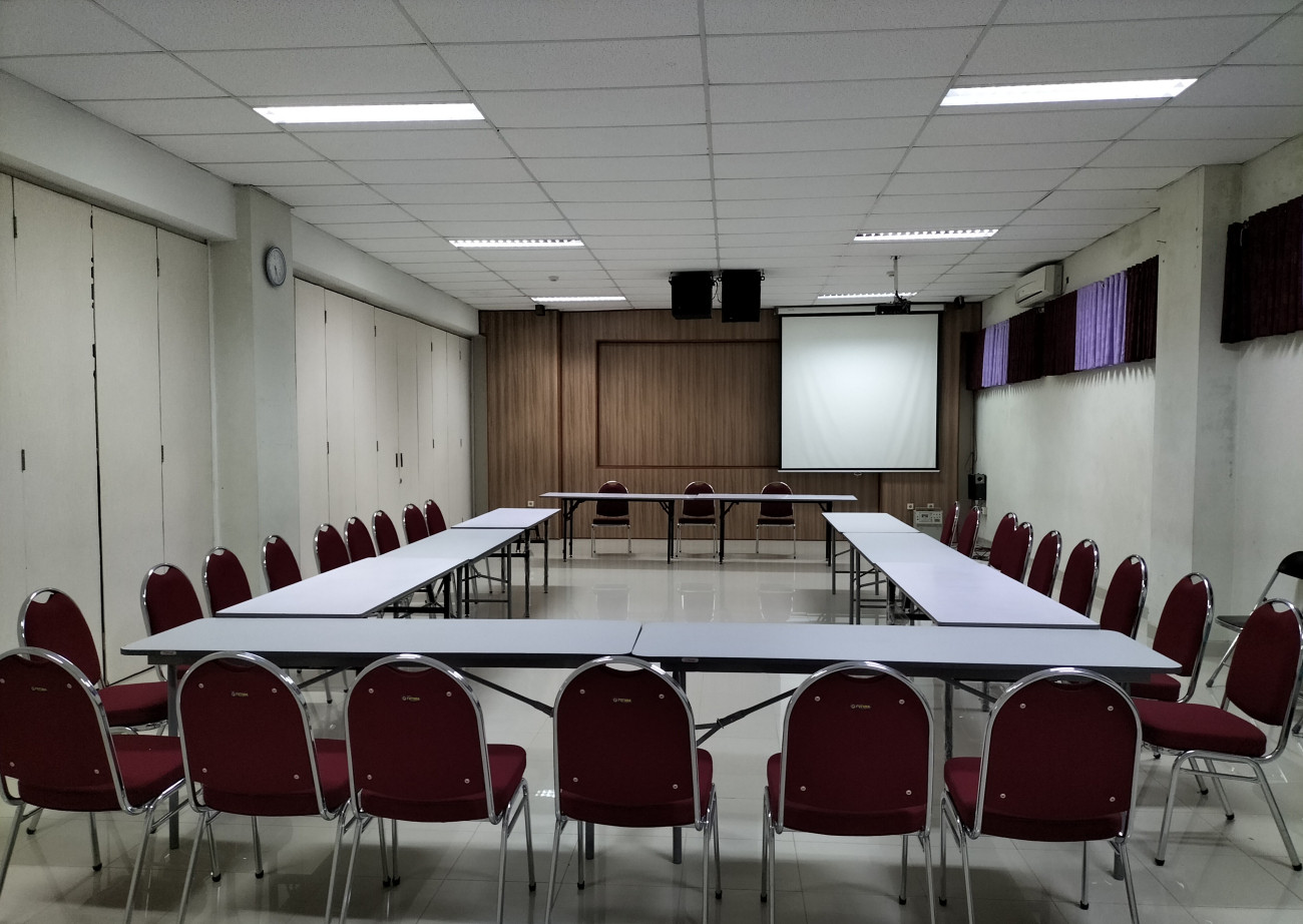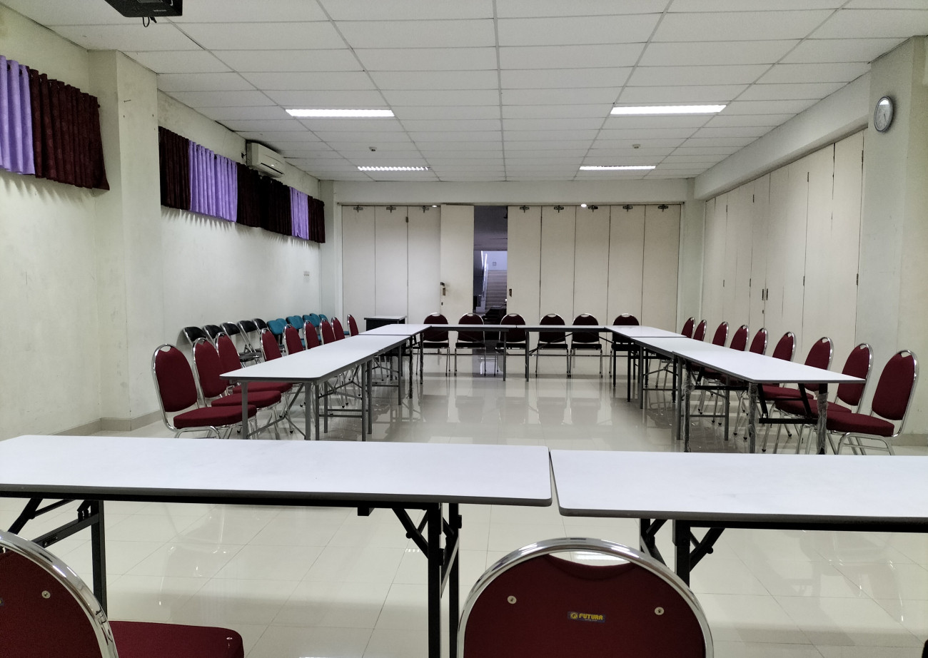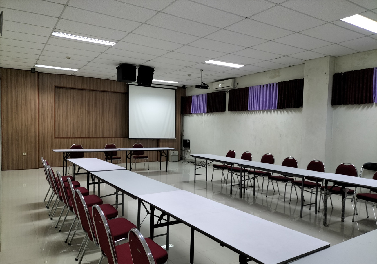 Fasilitas utama = AC Split: 2 buah; LCD Proyektor: 2 buah; Meja: 10 buah; Kursi hotel: 100 buah; Kursi tunggu: 15 set; Akses Wi-Fi Guest. Ruang berada di lantai 2 gedung W.S Rendra dengan akses menggunakan elevator/lift dan juga tangga. Fasilitas Pendukung = Meja presens; Kursi presensi; Layar TV; Mushola; Toilet P/W/D, Genset.
